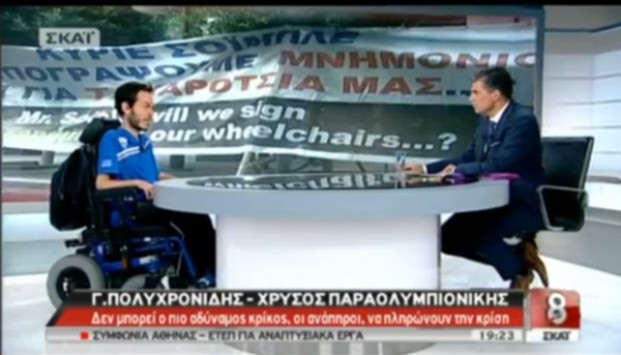 Στους δρόμους βγήκε χρυσός παραολυμπιονίκης που μαζί με άλλους ανάπηρους, διαμαρτυρήθηκαν για τις περικοπές στα επιδόματα...